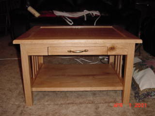 I made this for our friend's beach condon. It made from white oak covered with Helmsman polyurethane. They need matching end tables for their coffee table. |